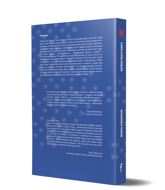 Фейсбучная книга FBB ©, том 1 - книга Леоніда Злобінського, що відкриває нову серію фейсбучних публікацій. Книга (проза) коротких історій про нас з вами, про любов, про горе, про вічне і життєве, з глибокими емоціями щастя, ніжності, а іноді і про внутрішні міграції (авторське визначення певного стану душі).